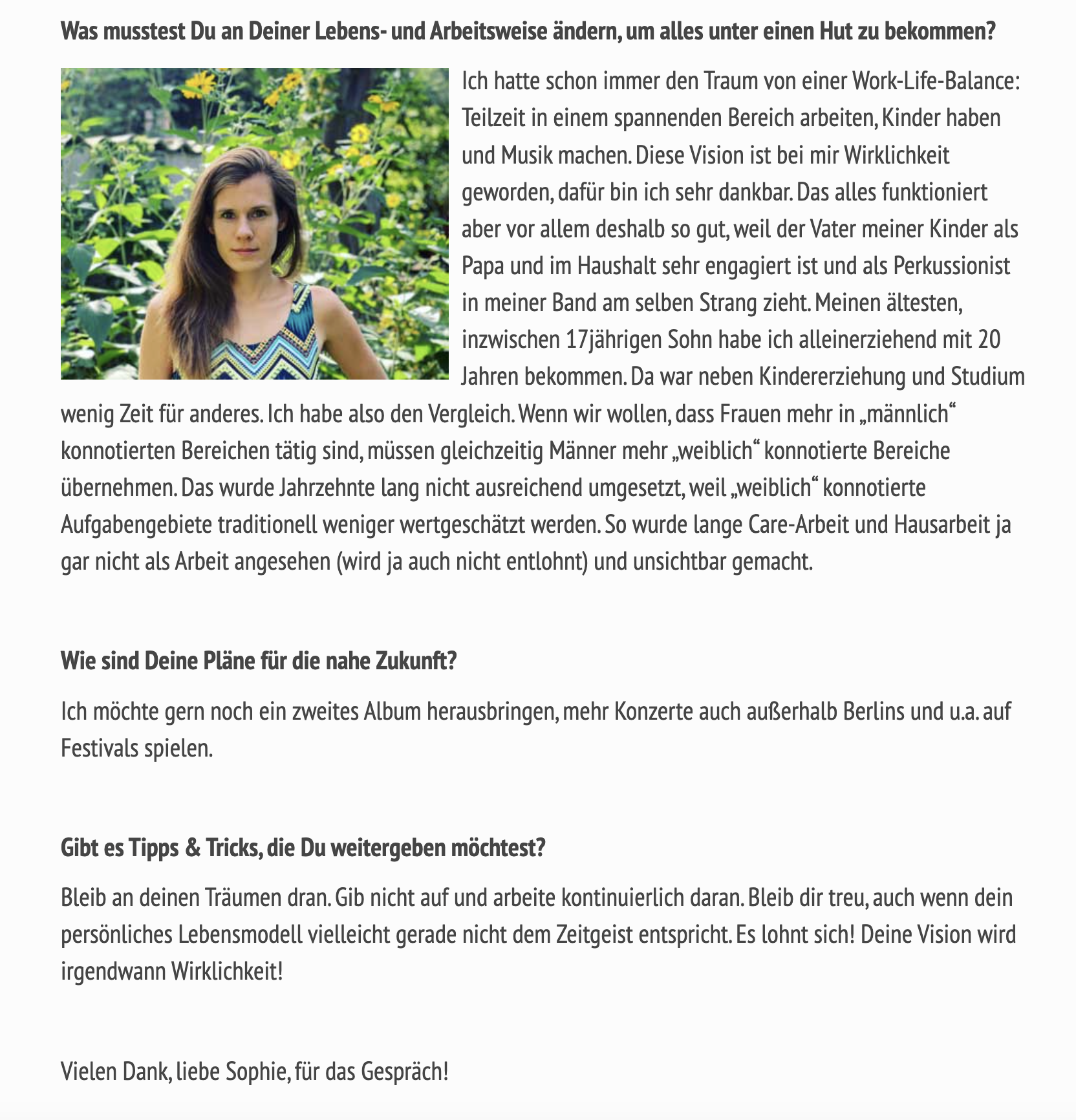 „Sophie Trost, sie soll eine außergewöhnlich talentierte Singer-Songwriterin aus Berlin sein, die ihre persönlichen Erfahrungen in […] Songs ausdrückt. Ihr […] Debütalbum ist jetzt raus […] , was ich einfach schön finde, die Musik ist wirklich leicht und ernsthaft zugleich, sie ist tanzbar und lässt Raum […] für Improvisation und macht echt Freude und Spaß – und deshalb hab ich sie rausgesucht […] Ich glaube, da wird es noch viele interesssante Aufnahmen geben mit Sophie – und wir freuen uns schon drauf. Absolut – Glückwunsch zum Debütalbum!“